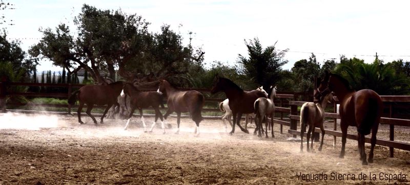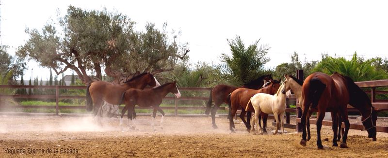 Nuestra ganadería sigue las 2 líneas que actualmente podemos encontrar en el mundo del caballo español. Por un lado, tenemos caballos con una excelente genealogía (yeguada militar, bocao, escalera,...) para los amantes del caballo español clásico, y por otro lado, tenemos un gran abanico de las diferentes capas diluidas (bayo, isabelino, alazán,...) que podemos encontrar en los actuales caballos de pura raza española.